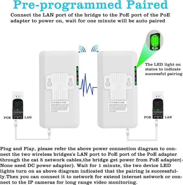 Long Range WiFi Access Point Wireless Bridge Supports 2KM for PTP/PTMP Long Distance Transmission LED Display Quick easy set up - work fantastic