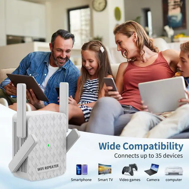 Widely Compatible and Simple Setup: The WiFi extender can be used with any 802.11b/g/n wireless internet router, meaning it works with any standard router or gateway. It can be easily set up on almost any device, including smartphones, laptops, consoles such as PS5, smart home gadgets and more.