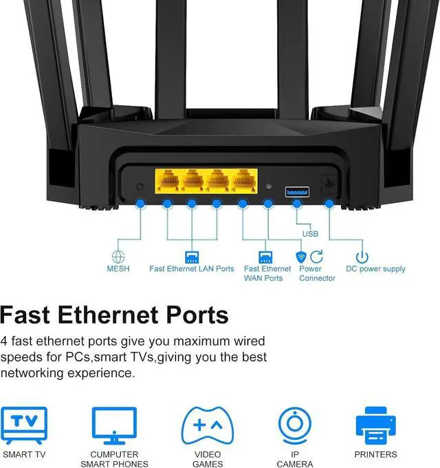AX3000 WiFi 6Dream router,The standalone WiFi6 chip enables WiFi rates up to 3000Mbps. All full Gigabit ports. Faster network ensures smoother streaming and faster downloads without latency.Perfect gaming wifi nest router.With our 2T3R MU-MIMO antenna technology, offer everyone stable and fast internet even there are several people using the same wifi.