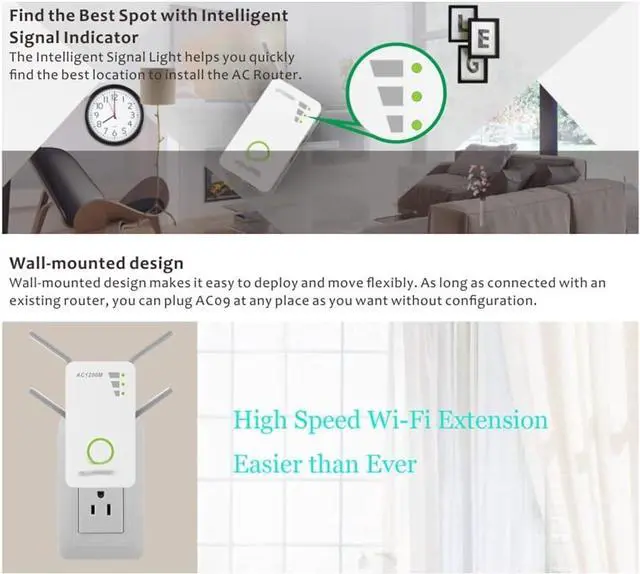 The extender can take an existing 2.4GHz or 5GHz signal, repeat and extend it to a longer range where it is too far away from the router or access point toreach. Increase your signal and large coverage areas,or as a router function or AP Mode.