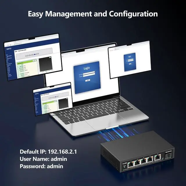 Smart Web Managed Switch Easy-to-use interface offers managed control for secure setup, access. You can enter management interface via web login, support device/port status query and various configurations: such as VLAN, QoS, security, multicast, MAC address table, etc. This switch does not come with VPN functionality.