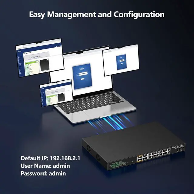 Smart Web Managed Switch Easy-to-use interface offers managed control for secure setup, access, and SNMP management. You can enter management interface via web login, support device/port status query and various configurations: such as VLAN, QoS, security, multicast, MAC address table, diagnosis, etc. This switch does not come with VPN functionality.
