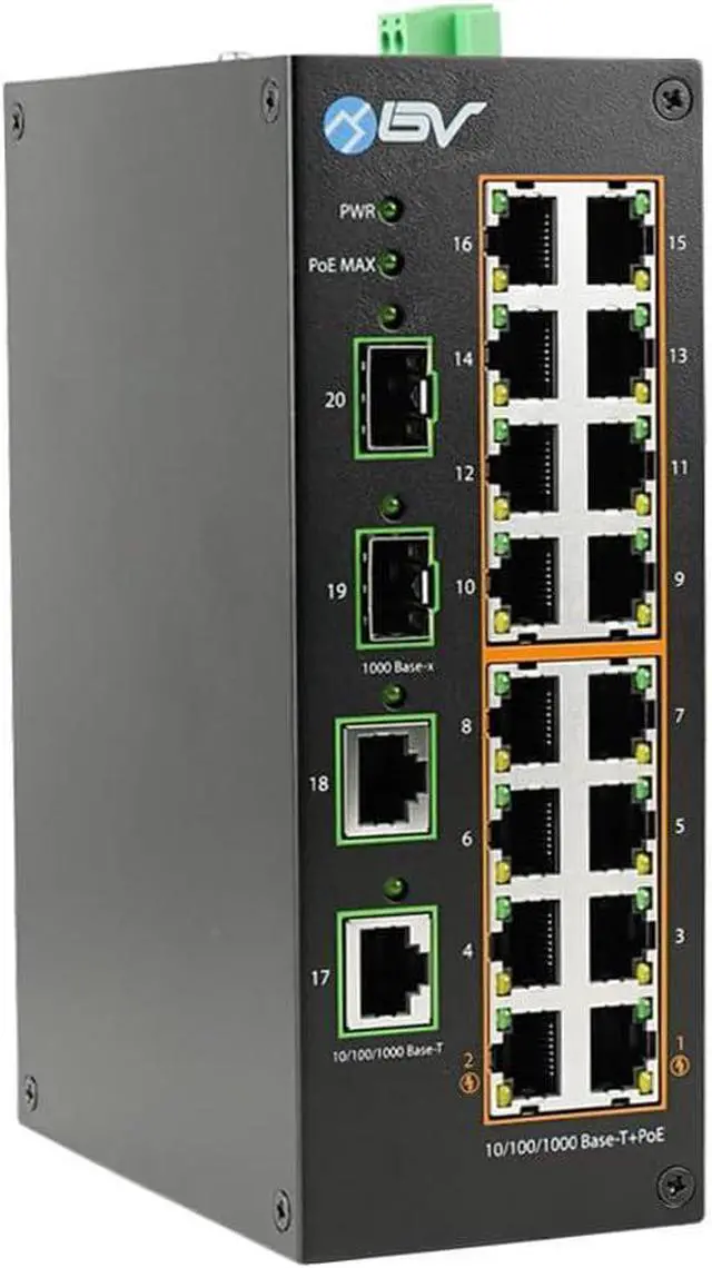 Elevate your network infrastructure with the BV-Tech POE-SW803-DIN Unmanaged PoE Switch, a powerful solution designed to empower your connectivity and simplify device management. Engineered with precision and packed with intelligent features, this switch is built to cater to your networking needs. Featuring a total of 11 ports, the POE-SW803-DIN offers a seamless blend of efficiency and versatility. With 8 RJ-45 10/100/1000 Mbps PoE ports, devices can be powered and connected simultaneously, providing reliable connections for your essential equipment. Additionally, the 2 SFP 1000 Mbps uplink ports (Port 9-10) ensure high-speed data transfer over longer distances, enhancing your network's capability. Power over Ethernet (PoE) is taken to new heights with this switch. Equipped with the latest IEEE 802.3af/at/bt and Hi-PoE protocols, it can deliver up to 90W of power per port, effortlessly driving power-intensive devices. The intelligent PoE performance ensures your devices receive the right amount of power, optimizing their functionality. Designed to transcend distance limitations, the switch incorporates long-distance PoE transmission technology. With an impressive range of 250 meters, connecting remote devices becomes a breeze, offering unprecedented flexibility in device placement. Reliability and security are at the core of our design. The inclusion of PoE watchdog and advanced power management guarantees that your devices are safeguarded against power fluctuations and failures, enhancing their operational longevity. Built to withstand the demands of North American environments, this switch boasts all-giga ports, ensuring rapid data transfer rates. Its rugged construction is complemented by a wide working temperature range, from -30°C to +65°C, making it suitable for diverse settings. The BV-Tech POE-SW803-DIN Unmanaged PoE Switch is your answer to efficient, hassle-free networking. Whether you're establishing a surveillance network, powering wireless access