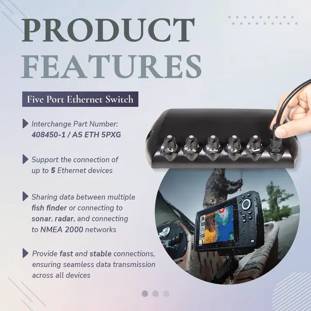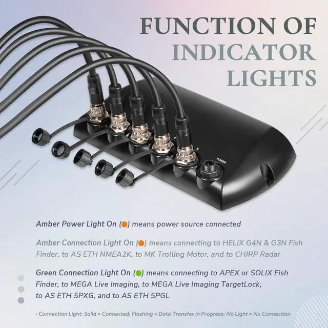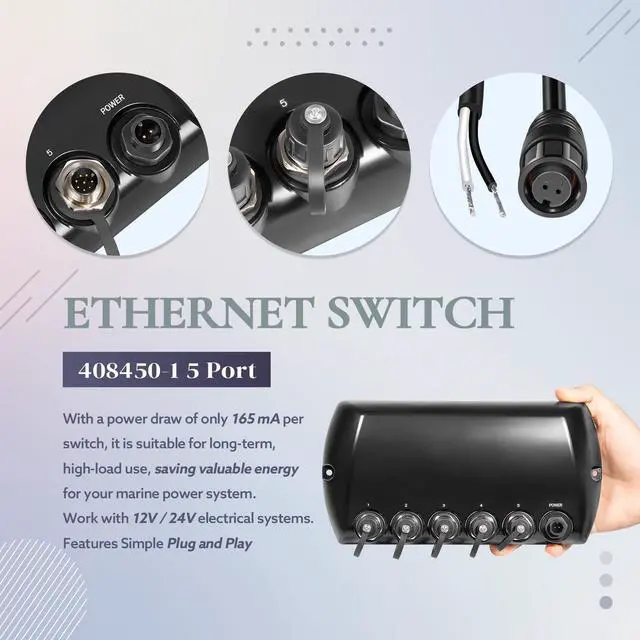 WARNING: The Ethernet Switch power cable (included) can be connected to a main fuse panel or a battery switch with an inline fuse. It is not recommend connecting to a battery without a fuse and a switch.
