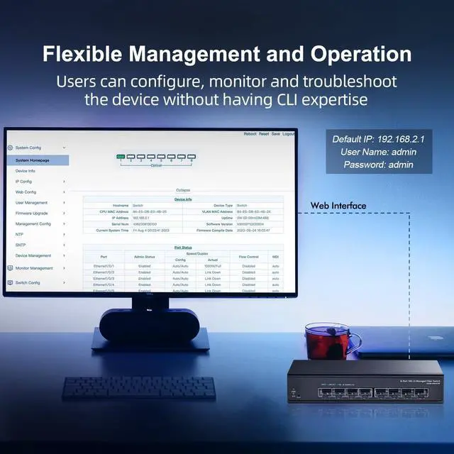 Easy-to-use with web GUI, It provides an overview dashboard, portmanagement and setting guide, making network management intuitive.