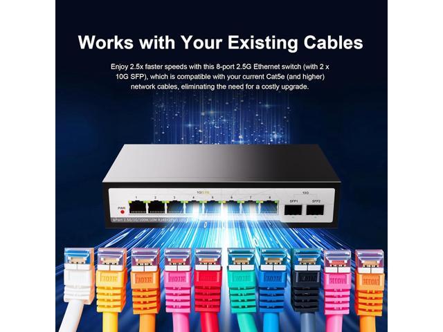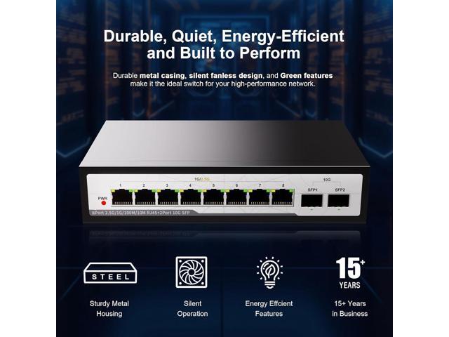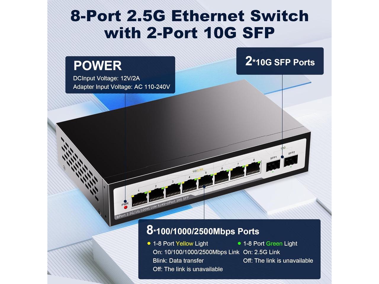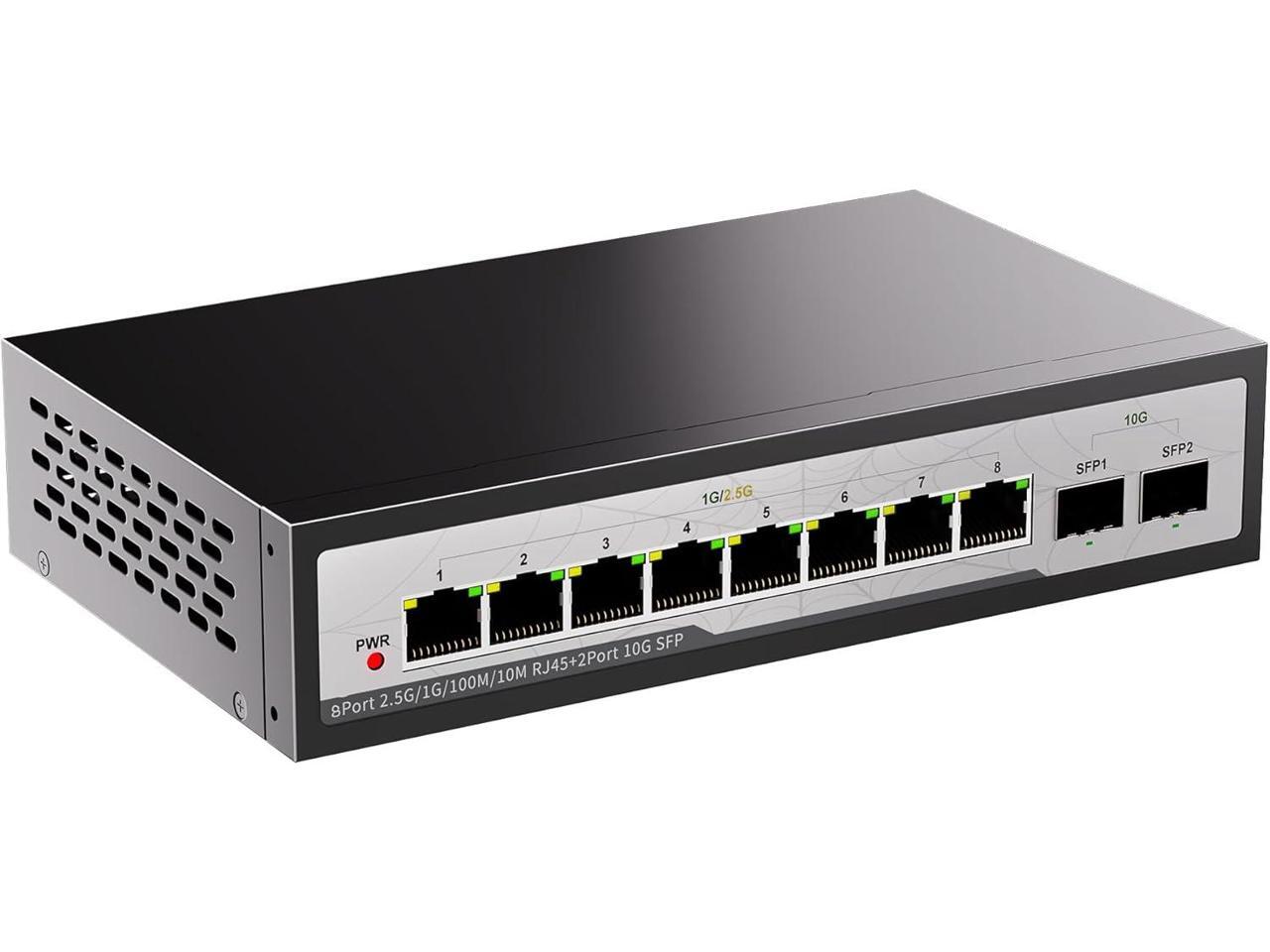 - Blazing-Fast 2.5GbE & 10G SFP+ Experience lightning-speed connectivity with 8 x 2.5GbE RJ45 ports and 2 x 10G SFP+ ports. Ideal for high-bandwidth tasks like HD streaming, rapid file transfers, and lag-free online gaming, ensuring top-tier network performance