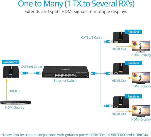 Optimized to work with gofanco IP HDMI Extenders to 1-to-1, 1-to-Many, Many-to-1, Many-to-Many configurations
