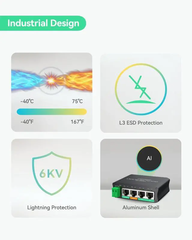 COMPACT DESIGN: Full metal design, Din Rail Mount, compact dimension 3.27 x 2.48 x 1.02''(83x63x25.8mm), perfect for tight spaces like electrical cabinets, solar control boxes, or outdoor enclosures.
