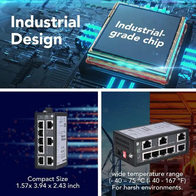 The ISE-P Series Switch is designed to meet power, size, weight andenvironmental tolerance requirements for industrial applications. It combines high-standard wide temperature and voltage design, enterprise-level wire-speed forwarding performance, a sturdy housing, industrial circuit protections and other industrial-grade features in one. Plug and play to meet the needsof harsh industrial environments.