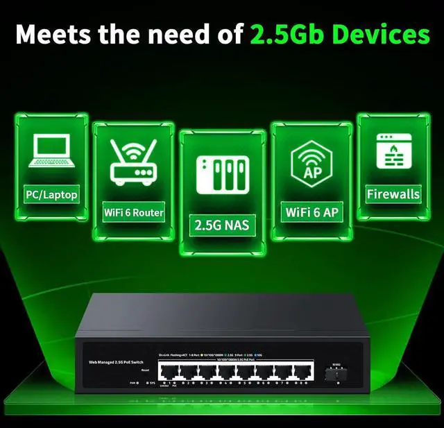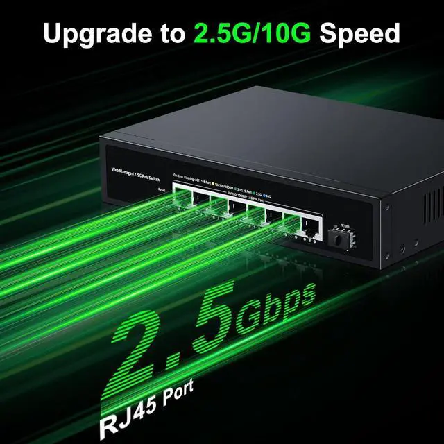 This Web Managed 2.5G PoE Switch is a versatile networking solution that allows you to connect multiple devices seamlessly. With its sleek black design, it features 8 2.5Gigabit Ethernet ports and 10G SFP+ fiber ports, providing high-speed data transfer rates of up to 2.5Gbps. The switch supports PoE (Power over Ethernet) functionality, enabling you to power compatible devices like IP cameras, VoIP phones, or wireless access points directly through the Ethernet cable. Its web-based management interface offers easy configuration and monitoring, while advanced features like VLAN, QoS, and port mirroring provide enhanced network control. Measuring 8.66 inches wide and 3.35 inches tall, this compact switch is perfect for small to medium-sized businesses, home offices, or any environment requiring reliable and high-performance network connectivity.