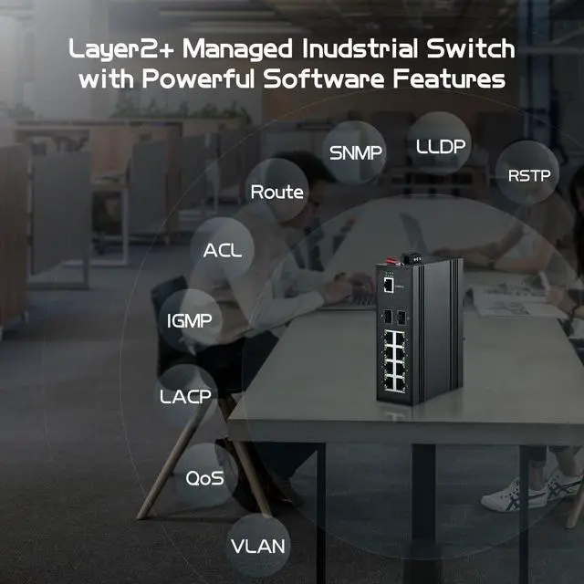 L2+ ManagedWeb and console cli managed, 4K Vlan, 8K mac table, ACL/Qos, port security, flow Control; STP/RSTP/MSTP spanning tree; storm suppression; ring/star network topology; etc. support L2+ function such as IPV4/IPV6/ARP/Static router/DHCP