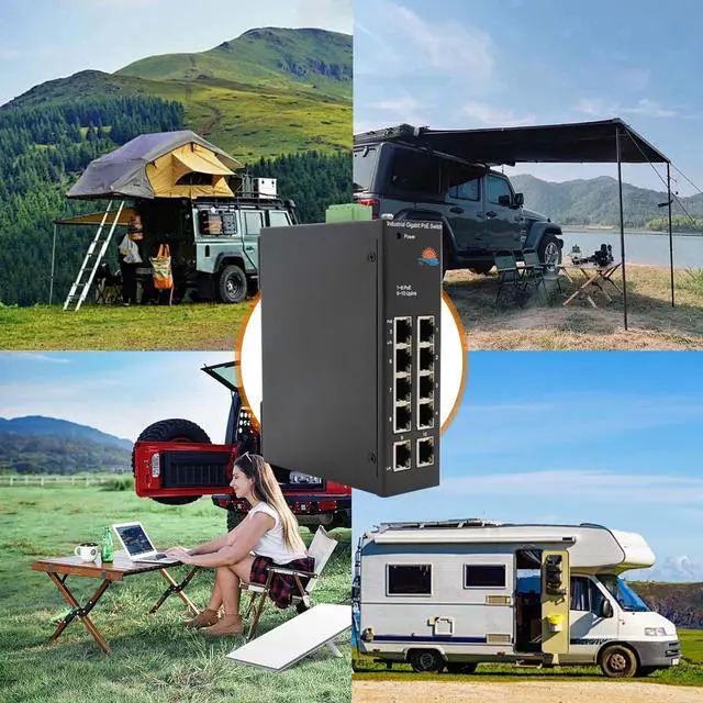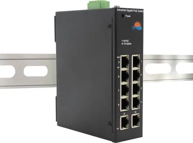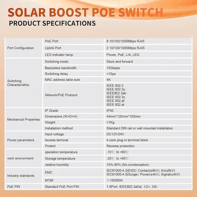 LIFEPOE Industrial 10-Port Full Gigabit Solar POE Switch with DC12V-24V to DC48V Voltage Booster, IEEE802.3at with Total POE Budget 120W, POE Power Supply for Solar Power/RV Truck/VoIP Systems.