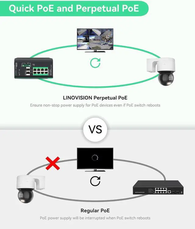 Q-PoE and P-PoE - Its Quick PoE technology enables PoE power supply immediately upon switch starup, and the Perpetual PoE ensure non-stop PoE supplying even if the switch is restarting. They are unique features for many IoT devices that rel