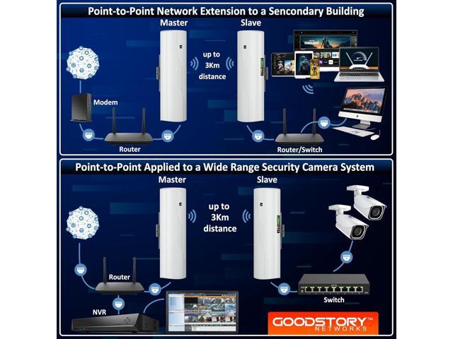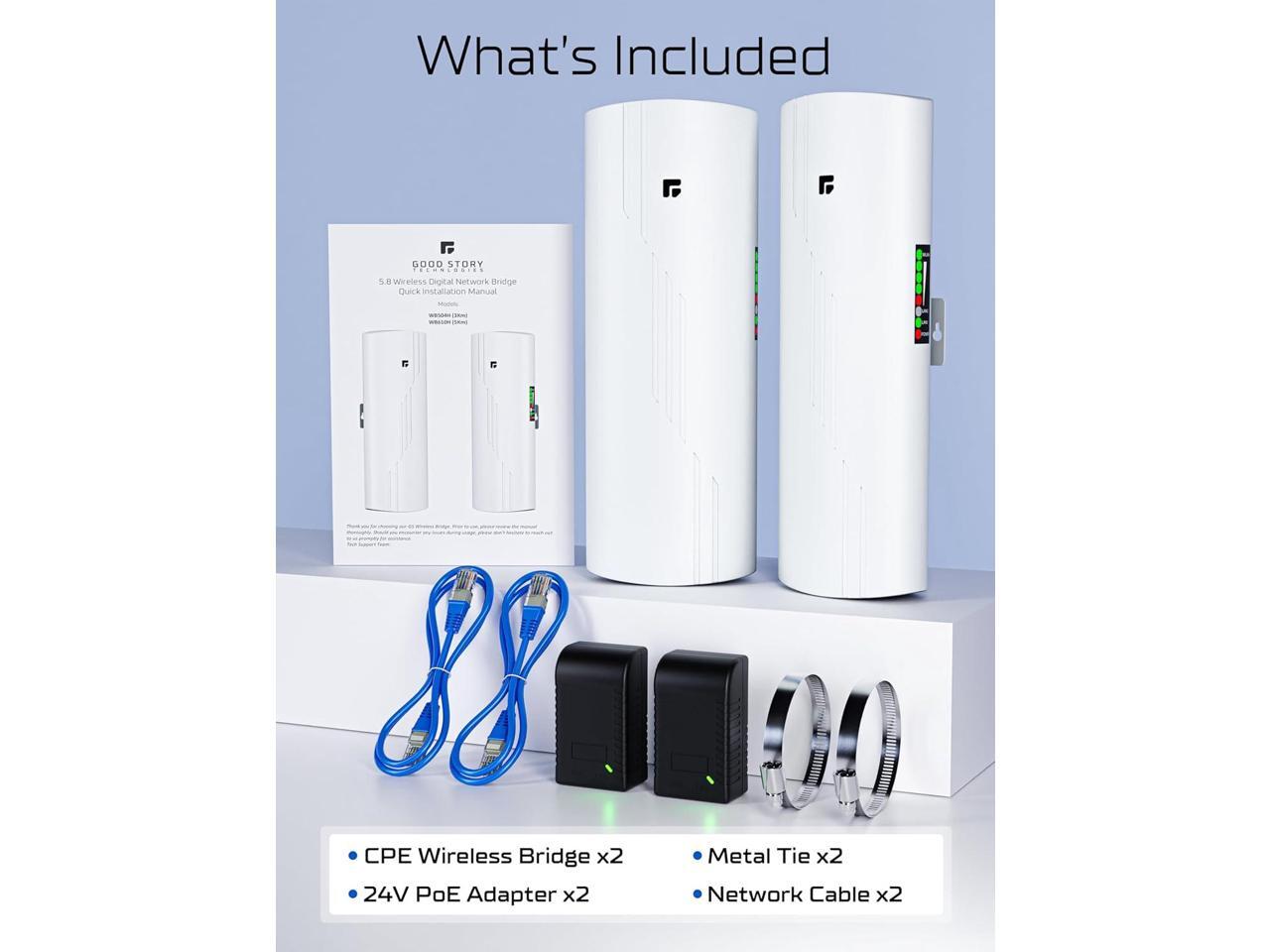 Wireless Bridge Point to Point Outdoor WiFi, Wireless Network Expansion Kit, Long Range High Speed 5G | 2 Units Bridge Kit Complete Pre-Configured - P2P Long Range (2Pack)