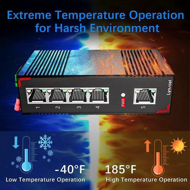This ItemLynxcel 5-Port PoE Gigabit Industrial Ethernet Switch, 65W PoE Output, 4 x IEEE802.3af/at 30W PoE+, 10Gbps Switching Capacity, IP40 Rated Unmanaged Din Rail PoE Switch(with Power Supply)Recommendations3 Port Hardened Industrial Gigabit Din Rail Switch,10/100/1000Mbps Ethernet Switch Din Rail 24V,8Gbps Switching Capacity,IP40 Rated Unmanaged Network Switch(-40~80°C) Lynxcel 5 Port Industrial Ethernet Switch, 5 x 100Mbps Din Rail Ethernet Switch, Unmanaged IP40 Network Switch, 1Gbps Switching Capacity (-40 to 167°F) Extreme Temperature Centopto Mini Industrial 5 Ports Gigabit PoE Switch - Hardened RJ45 10/100/1000Mbps 802.3at 30W/Port Ethernet Din Rail Mount PoE+ Unmanaged 10Gbps Switching Capacity Mini 5-Port Gigabit Ethernet Switch - Industrial-Grade Unmanaged Network Switch with 12-48VDC Power Input, Din-Rail or Wall Mount,Fast Connection,Plug and Play, Rugged Metal Case TRENDnet 5-Port Industrial Fast Ethernet DIN-Rail Switch, TI-E50, 5 x Fast Ethernet Ports, IP50 Rated, Extreme Tem