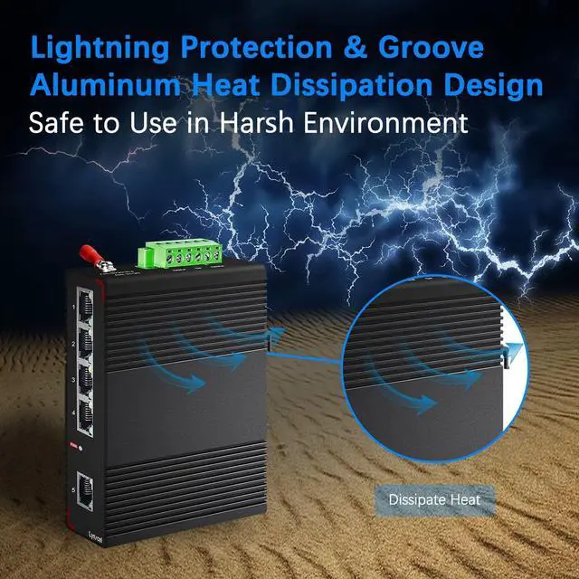 Lynxcel Industrial gigabit PoE ethernet switch has 4KV power port surge protection and 2KV network port, grounding design can effectively anti-lightning and electrostatic interference, suitable for the harsh electromagnetic environment.