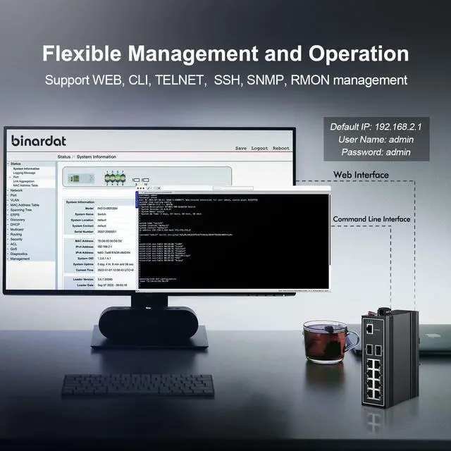 Binardat 10 Port Gigabit L2+ Managed Industrial DIN-Rail Switch, 8 Gigabit Ethernet Ports, 2 Gigabit SFP, Vlan|Route|Ring|ACL|Qos Web/Console Managed
