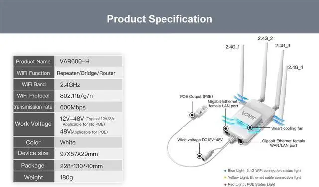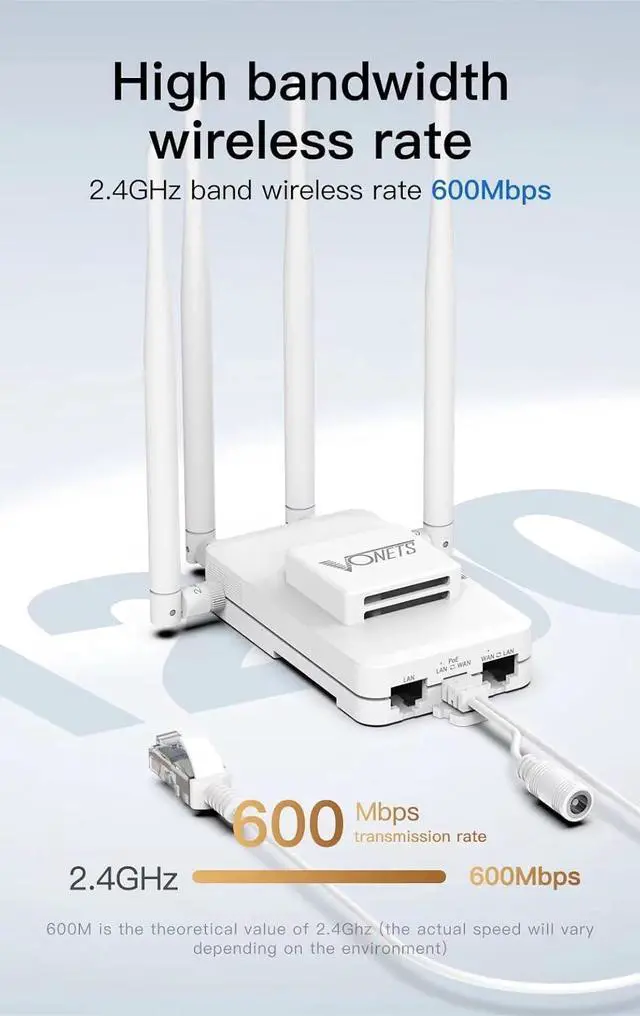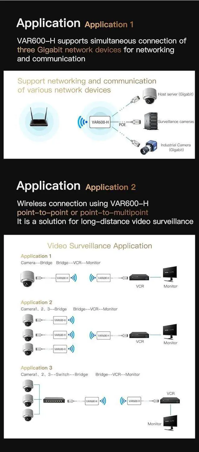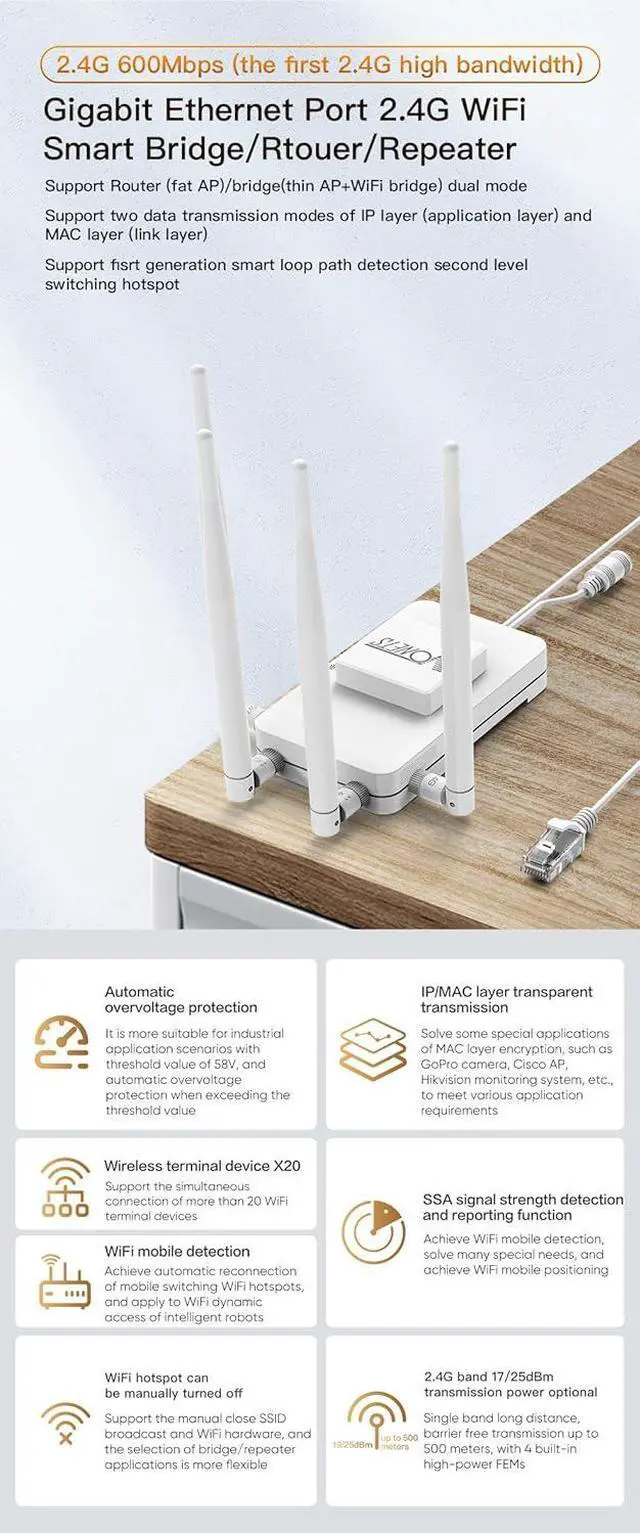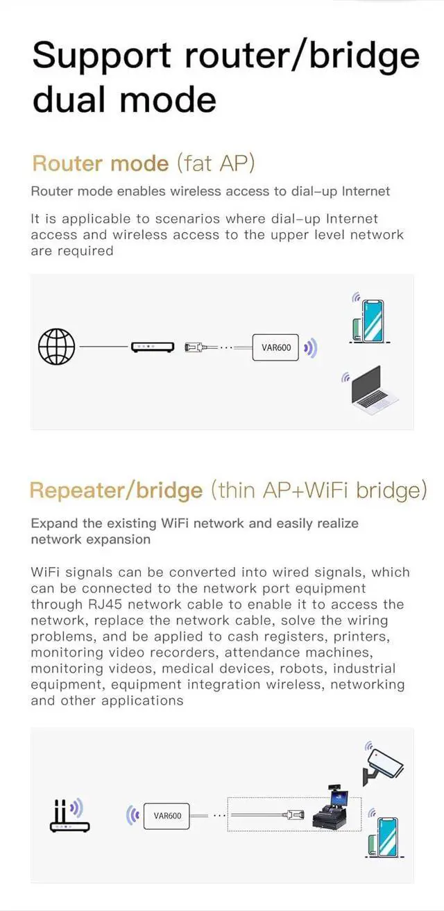 VONETS VAR600-H is an Industrial 2.4GHz Gigabit WiFi Router Wireless Bridge Ethernet Repeater, WiFi Bridge with ethernet port, point to point Wireless bridge WiFi to ethernet adapter