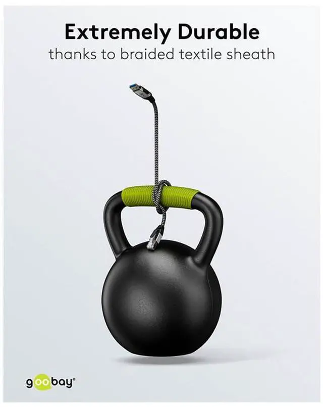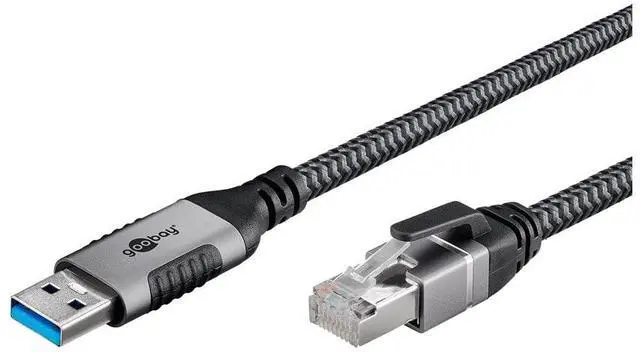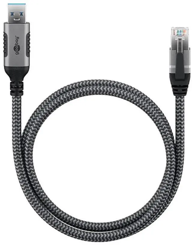The technology upgrade for maximum convenience: Our innovative adapter cable is the compact Ethernet solution for all USB-A devices without their own RJ45 port. The smart chip cleverly built into the USB plug replaces the cumbersome RJ45 to USB-A adapters that are always required. Ethernet is immediately available without additional drivers. The LAN cable allows a stable, wired Internet connection to USB-A devices without a separate network cable connection. With CAT 6, the cable achieves a transfer rate of up to 1 Gbit/s. The CAT-6 cable is effectively protected from interference thanks to foil shielding (FTP). The braided, durable textile jacket of the USB cable has a pleasant feel and is gentle on sensitive surfaces. High-quality, robust metal connectors with kink protection ensure special DurDurDurDurDurDurdurability Is compatible with notebooks and tablets from popular manufacturers such as Lenovo, HP or Dell as well as with Windows, macOS and Android and is backwards compatible with USB 2.0. Note: The Internet cable is not suitable as a rollover cable for game consoles. Technical data: Connections, contact material nickel-plated connection, type USB 3.0 plug (type A) connector 2, type RJ45 plug (8P8C) cable cable length 1. 5 m diameter diameter 5 Coat (approx.) 6 mm. Number of shields 1 x type 1, shielding film (aluminium) signal transmission max. Transfer rate 1 Gbit/s General colour black, silver markings WEEE, CE packaging type brown box with label dimensions / weight consumption unit 1 piece. In polybag accessories - power supply cable length 15000 mm
