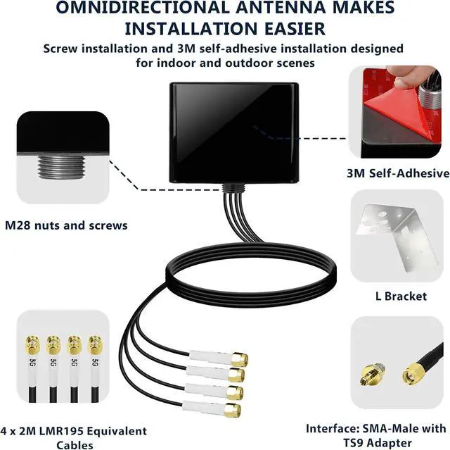 The 4x4 MIMO design enables multiple inputs and outputs, maximizing signal stability and data throughput. Its omnidirectional design simplifies installation compared to directional antennas, ensuring signal reception from all directions. The outstanding ease of use and stability make it excel in dynamic performance scenarios.
