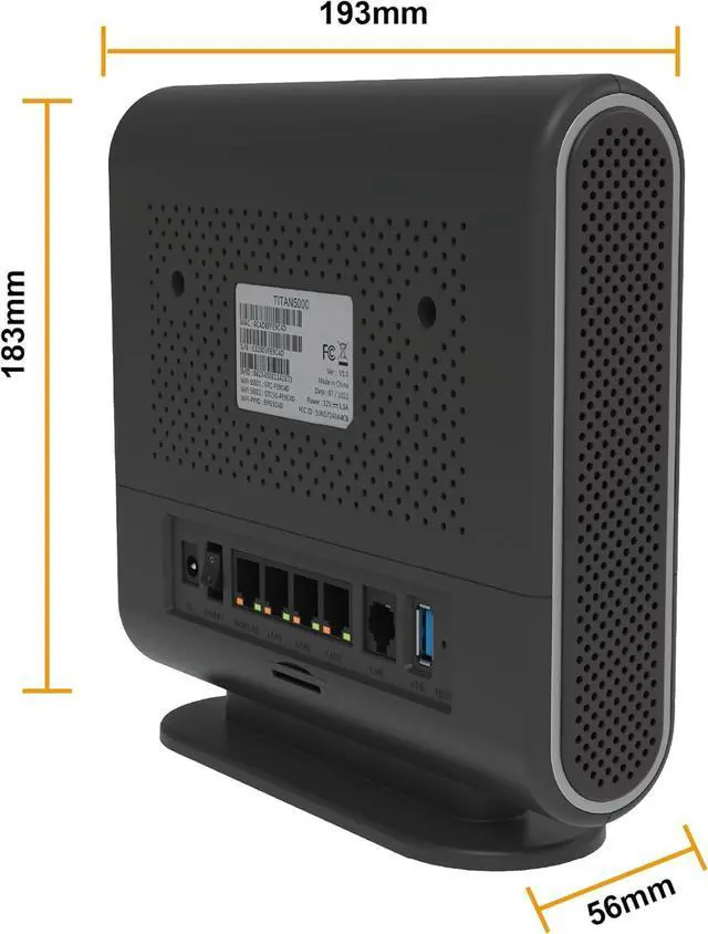 Experience next-generation connectivity with this powerful 5G indoor router by Global Telecom Engineering. The TITAN5000 delivers blazing-fast wireless speeds up to 4.8 Gbps, making it ideal for both residential and business environments. This advanced router supports both 5G NR NSA/SA Sub-6GHz and Wi-Fi 6 technologies, providing exceptional coverage and performance for all your connected devices. With multiple LAN ports, VoNR/VoLTE capabilities, and comprehensive multimedia support, it's a complete connectivity solution. The router excels at handling demanding applications like HD video streaming and VoIP communications. Its multi-port design offers flexible connectivity options, while the sleek, ventilated housing ensures optimal performance. Perfect for those seeking to replace traditional wired broadband, this router delivers the speed and reliability needed for modern digital lifestyles. The intuitive status indicators help monitor system performance, while the WPS button enables quick and secure device connections. Whether you're running a small business or setting up a high-performance home network, this router provides the throughput and features to keep you connected. TITAN5000 is certified on T-Mobile and UScellular and is compatible with all major US service providers.