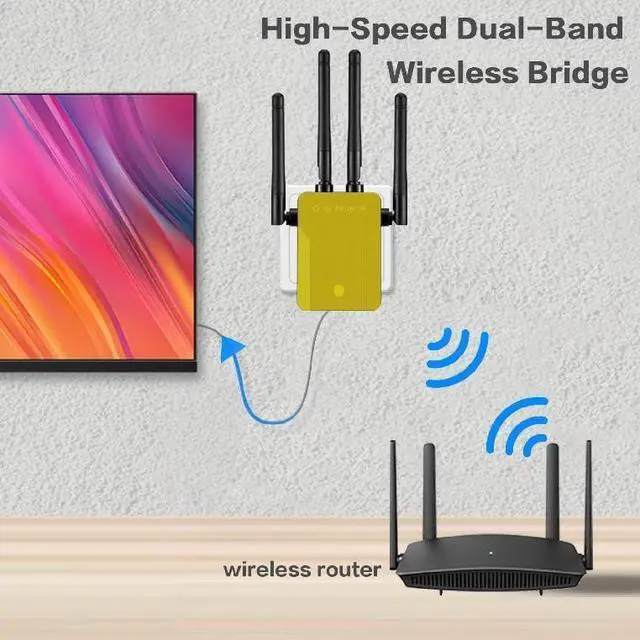 • Upgrade Your Wired Devices To WiFi AC1200 High Speed By Using this Dual Band wifi to ethernet, Make your Ethernet-enabled Devices Connect the Internet via Wireless Connection. 867Mbps on 5Ghz and 300Mbps on 2.4Ghz - The 5GHz Universal WiFi to ethernet bridge works with Any 802.11ax/ac/a/b/g/n WiFi Routers