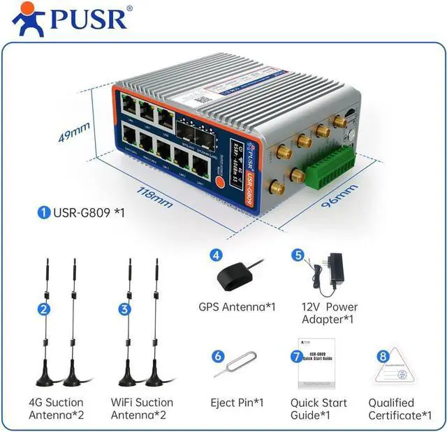 The G809 series, flagship industrial routers, adopt top Qualcomm chips. Boasting 8GB storage, Python secondary development, and rich interfacesincluding 10 Gigabit ports (2SFP + 8RJ45) and Qualcomm dual-band WiFi 6,cellular router has been widely used in the M2M field of the IoT industry chain, such as smart grids, smart transportation, and environmental protection, etc.
