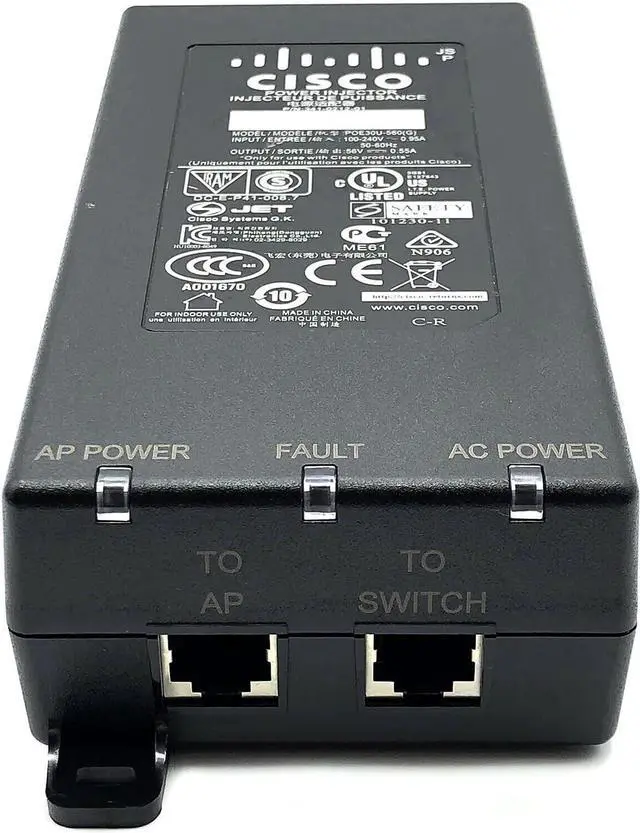 Cisco compatible Aironet Power Injector AIR-PWRINJ6 is a power injector which increases the deployment flexibility of Cisco Aironet wireless access points and bridges by providing an alternative powering option to local power, inline power-capable multiport switches, and multiport power patch panels. It carries an integrated power supply that switches 100 to 240 volts AC into 49 - 60 Hz in order to produce power onto the Ethernet cable to power the access point. The Cisco compatible Aironet Power Injector AIR-PWRINJ6 is designed for Cisco Aironet 2802E, 2802E (Config), 2802I, and 2802I (Config).