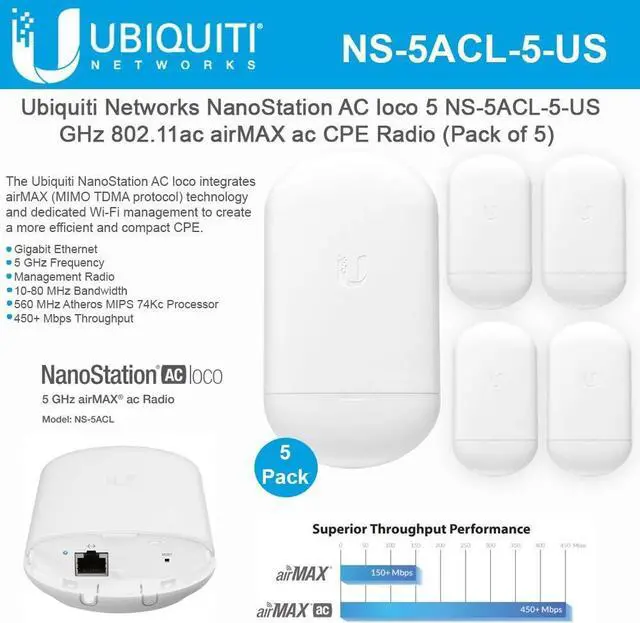 The indoor/outdoor NanoStation AC loco is compact, high-performance CPEs featuring airMAX AC technology and a dedicated Wi-Fi radio for management.