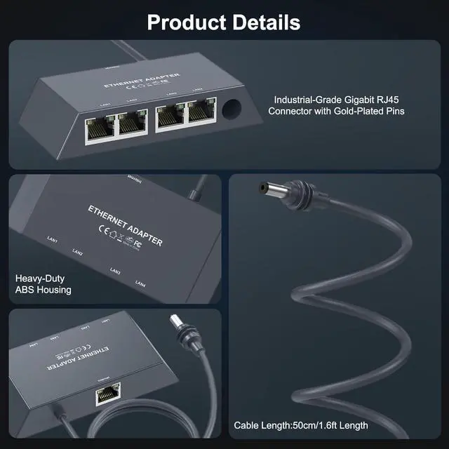 Enhanced Wired Coverage Connect up to 4 devices via Ethernet, with each port delivering stable 1000Mbps speeds 24/7. Solves Starlink's port shortage while expanding network capacity