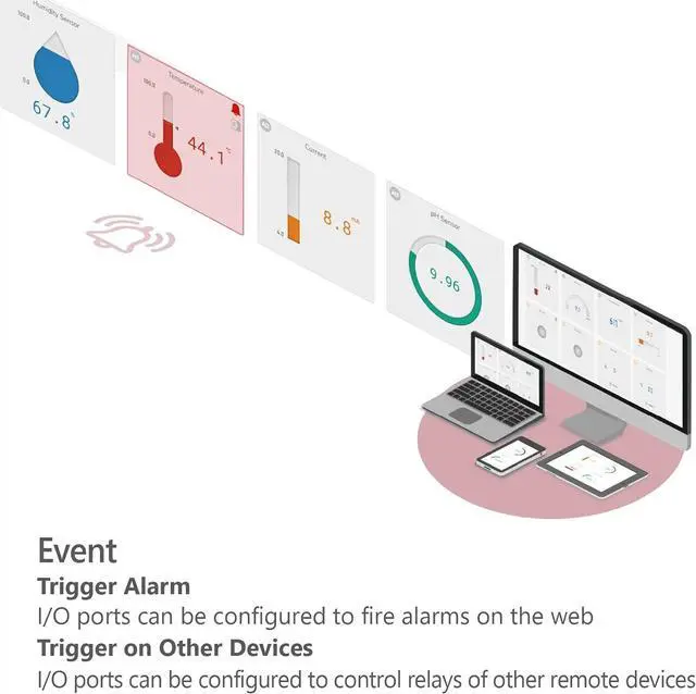 Device can be used to control/monitor machines/sensors via web interface of Sollae Cloud