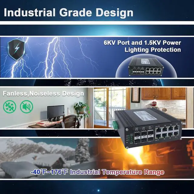 Industrial Grade Quality : The Hardened Industrial Switch is made of Aluminum Case, Dustproof IP40, With reliable and simple operation against vibration and shock, and wide operation temperature range (- 40°F - 176 °F) for harsh environments