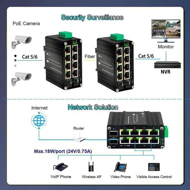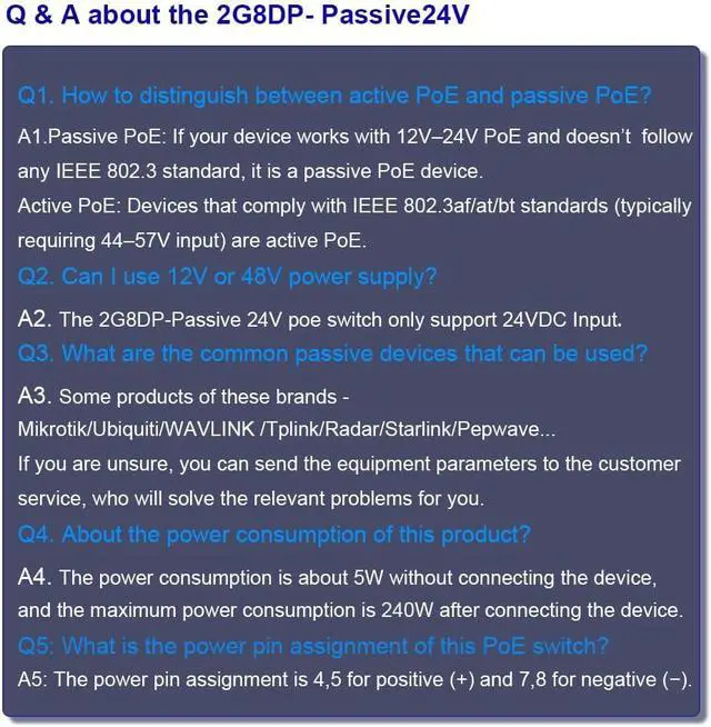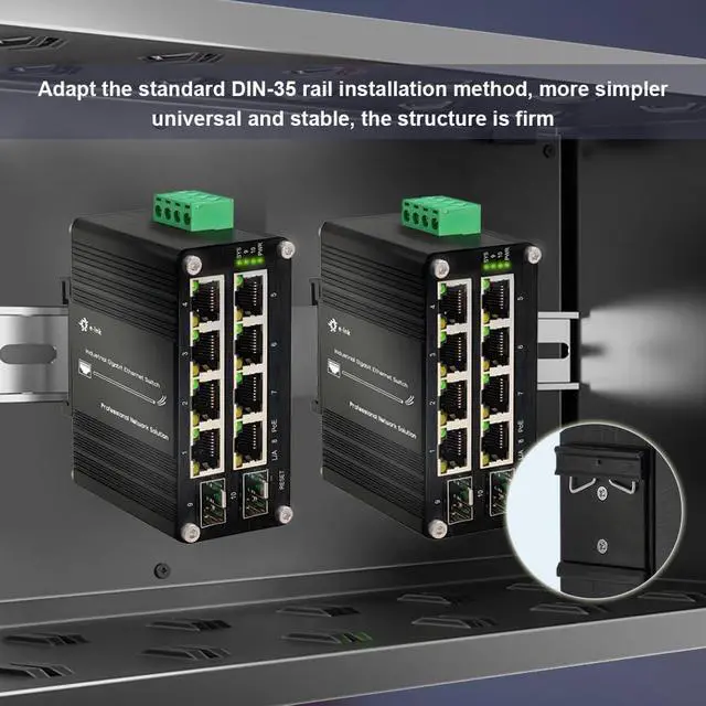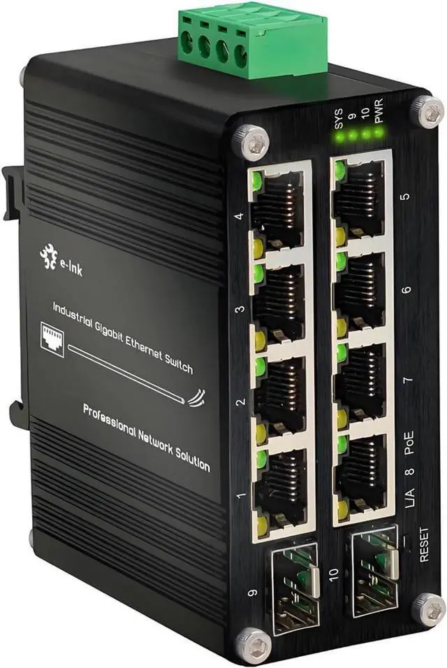 The industrial passive PoE switch features 2 x 100/1000Base-FX and 8 x 10/100/1000BASE-T Ethernet ports. It supports 24VDC power input and 24V PoE output. It also can operates in extreme temperatures (-40°C to 80°C) with its IP40 metal Al case, it's ideal for harsh industrial environments.
