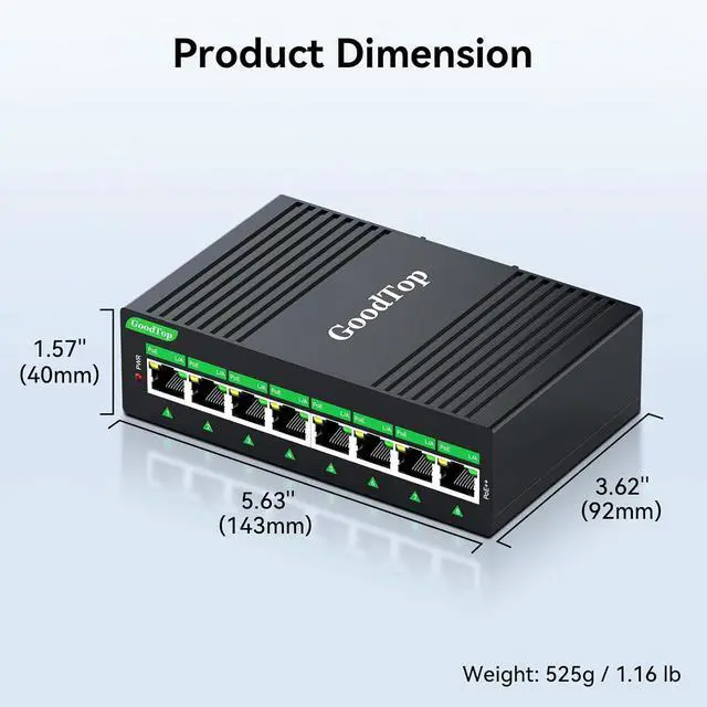 Gigabit High Speed: This ethernet switch is equipped with 8 Gigabit ports, automatically adapts to 10/100/1000Mbps environments.