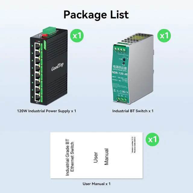Power Supply: It includes a 48V 120W industrial-grade power supply and also supports DIN-Rail installation.