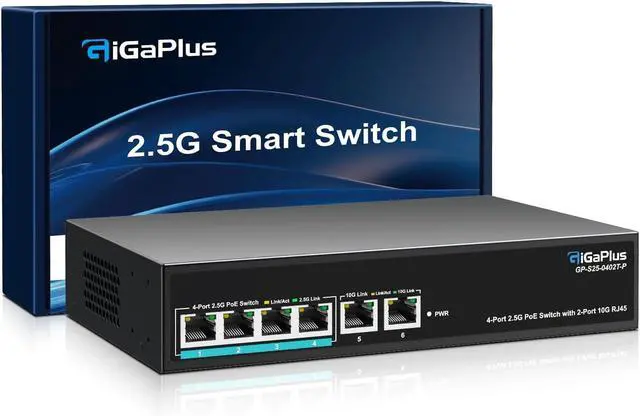 Plug and Play: Supports 10/100/1000M/2.5G auto-sensing on PoE ports 1-4, with auto MDI/MDIX and non-blocking data forwarding support, easy to set up without any configuration or software, providing the best performance for all your devices. This switch provides 2x10G RJ45 ports for high-speed network connections, providing a cost-effective solution for adding 10G link capacity.