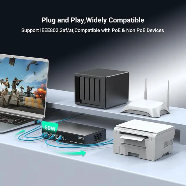 Wide Range of Applications: The Ethernet switch is highly compatible with 2.5G/10G NAS, 4K video, gaming PCs, 2.5G/10G servers, WiFi6 APs, and 2.5G/10G PCIe adapters, which can meet the needs of various network environments and is suitable for shopping malls, schools, hospitals, hotels, and small and medium-sized enterprises.