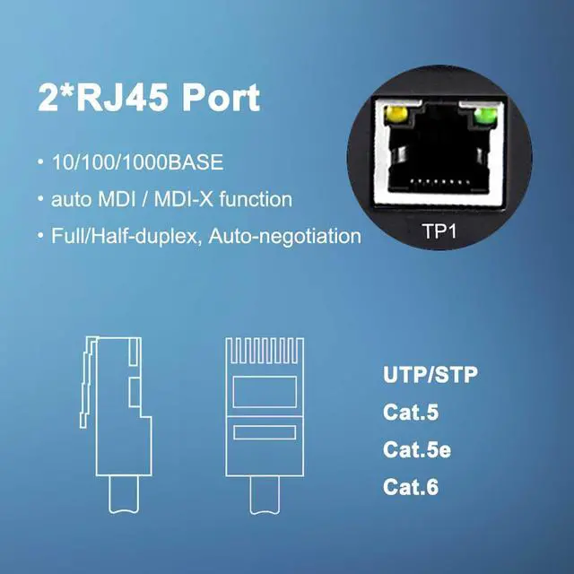 Overview: The Mini Gigabit Fiber Media Converter has 1*100/1000Base-X SFP Port and 2*10/100/1000Base-T RJ45 Port. There are three kinds you can choose, non-PoE, 30W, 90W. Plug and play. Its easy to use and convenient to install.