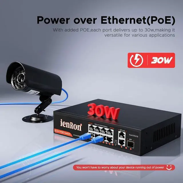 • Smart power delivery: 120W total PoE budget with 30W per port; automatically detects and delivers optimal power to connected devices while protecting non-PoE equipment