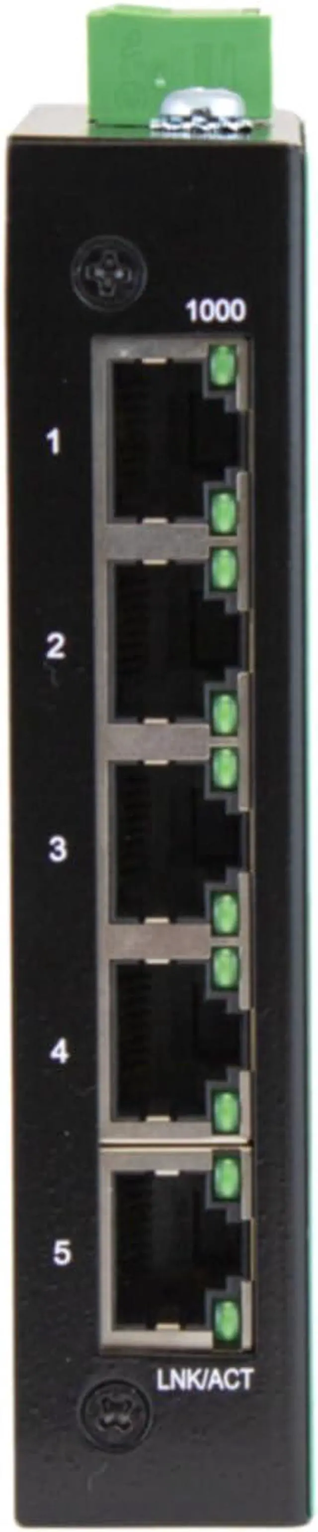 NETWORK PORTS: Features 5 RJ45 ports with 10/100/1000BASE-T speeds, supporting auto-negotiation and distances up to 328 feet for reliable industrial connectivity.