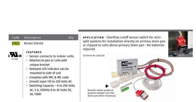 Easy to use sensor connects to indoor units State of the art microelectronic Attaches to pan or coils with unique brackets Multi voltage switch No moving parts