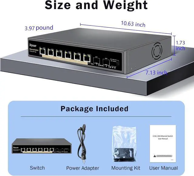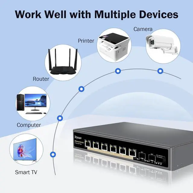 Port Speed Auto-NegotiationThe ports of switches are compatible With 1000M/2.5G/5G/10G, can automatically select the appropriate communication rate, allowing two connected devices to communicate at the highest common rate to ensure stable and efficient data transmission.