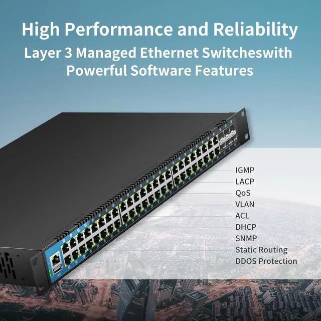 Enhance network securityAdvanced security features include 802.1Q VLAN, IP-MAC-Port binding, ACL, Port Security, DoS defend, Storm control, DHCP Snooping, 802.1X radius authentication and more.