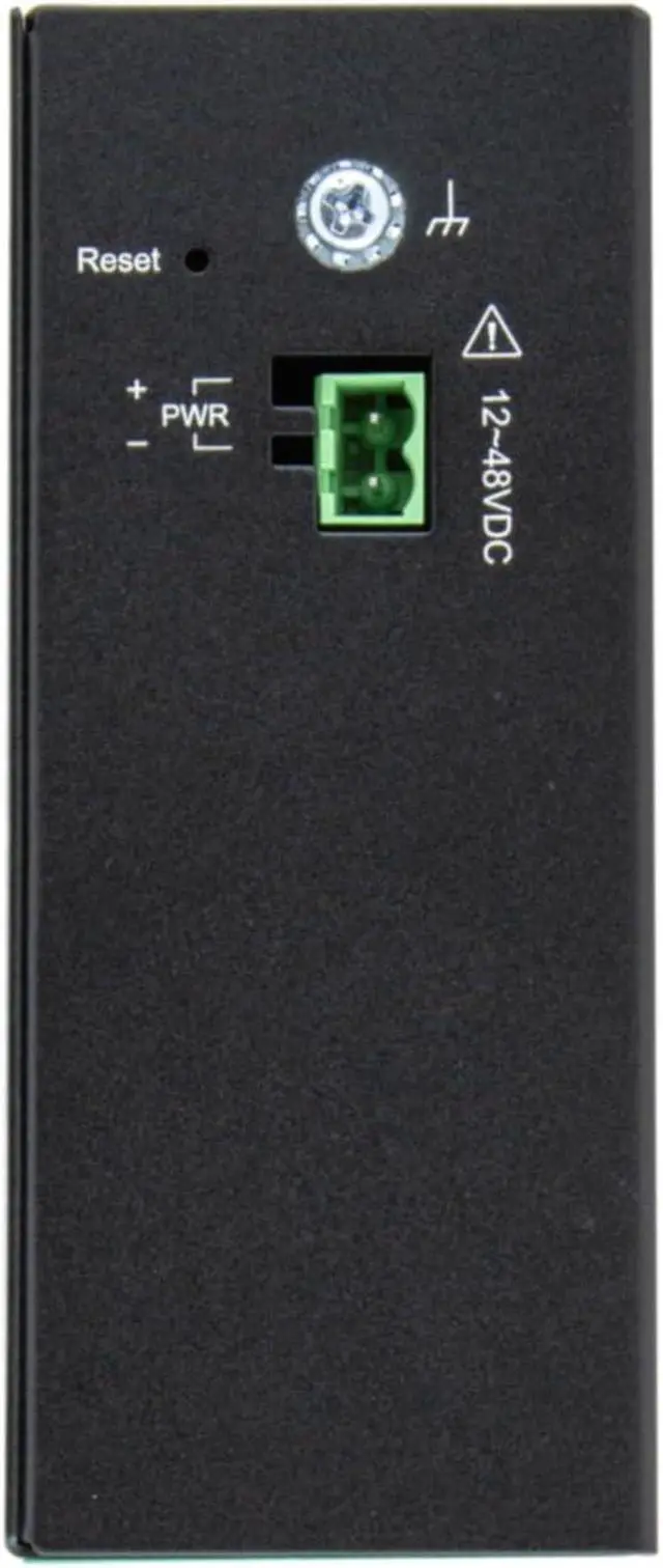 INDUSTRIAL DESIGN: Metal housing with DIN rail mount, compact size of 1.97 x 6.43 x 4.72 inches, operating temperature range from -40°F to 167°F.