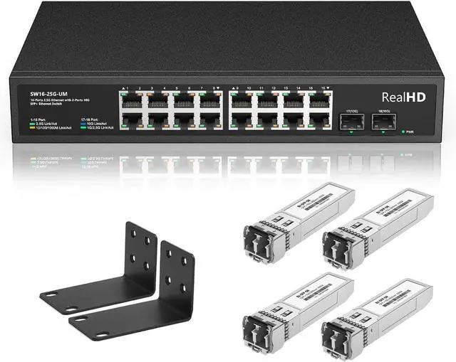 [ 2.5G Super-Fast ] This 2.5 gigabit switch features 16 x 2.5G RJ45 ports and 2 x 10G SFP+ port, providing higher-speed connectivity for your devices and allowing you to easily upgrade your network to support the latest 2.5G ethernet standard.