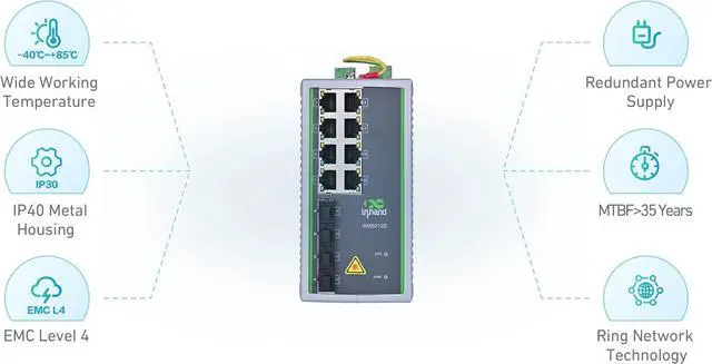 Industrial Quality ISM5012D-P switch is guaranteed with a 3-year warranty by InHand Networks. You can use it with confidence with the FCC, UL and CE certifications.Easy Installation Panel mounting and DIN-Rail mounting are available for various deployment scenarios. Metal casing with corrosion-proof coating, durable and corrosion.