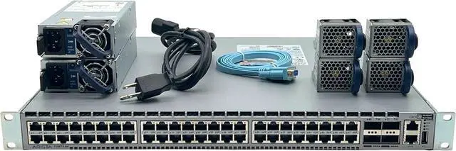 Switch Ports: 48x 10GBASE-T RJ45 ports (backwards compatible with 100Mb/1Gb) and 4x 40GbE QSFP+ ports.