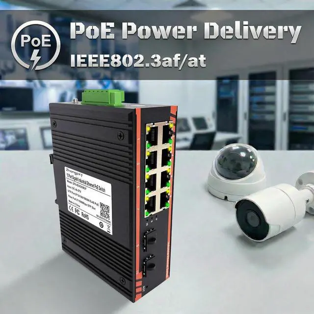 Full PoE Power Delivery Supports IEEE 802.3af/at with up to 30W per port, powering cameras, APs, and industrial edge devices without additional adapters