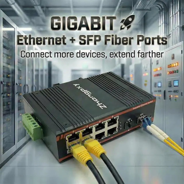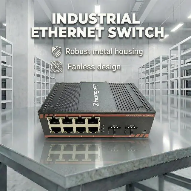 Flexible SFP Fiber Uplinks 8×Gigabit RJ45 plus 2×SFP slots enable long-distance, high-speed fiber connectivity ideal for industrial backbone and surveillance networks