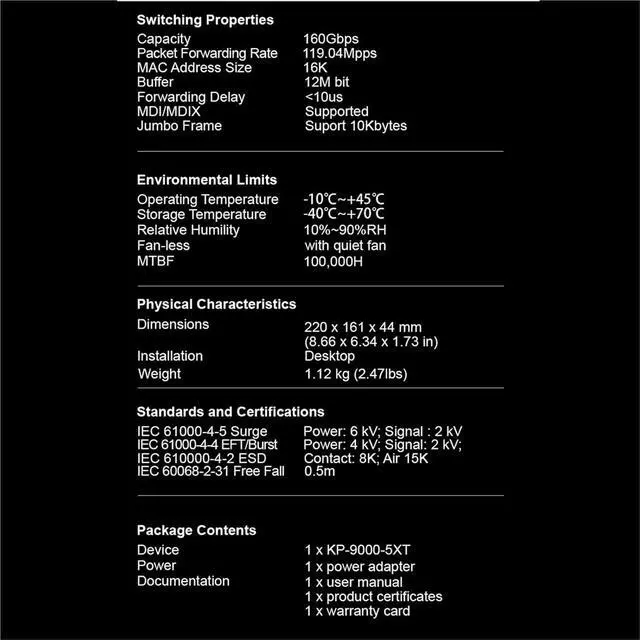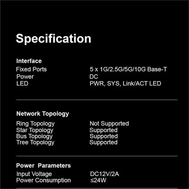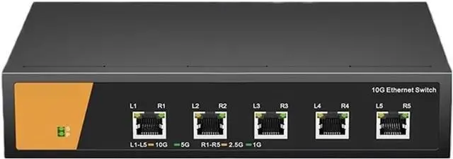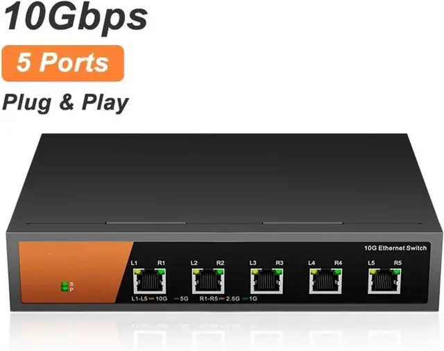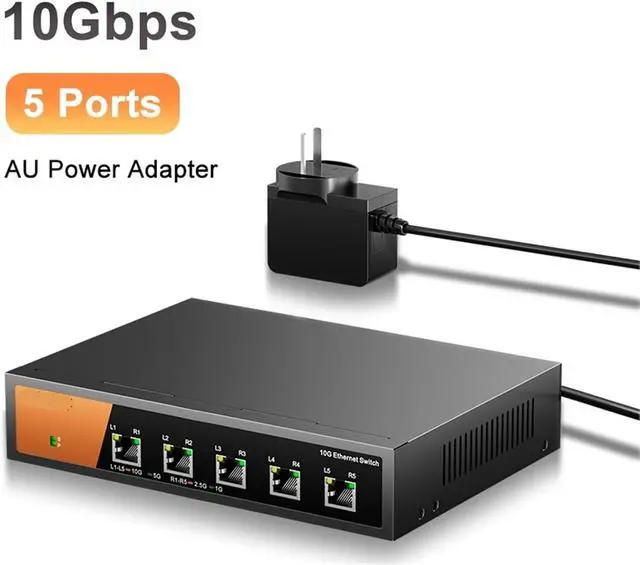 Network Switch 5 Port 10Gb Unmanaged Ethernet Switch Desktop/Wall-Mount Sturdy Metal Casing(Switch with AU Adapter)